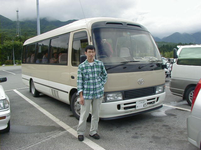 こんな人です。 この日は会社の研修・・・?にて 駒ヶ根に行きました。 後ろに写っているマイクロバスの運転手として、参加してます。 場所は駒ヶ岳SA(下り線)です。 大型免許があり運転のキャリアが豊富、酒嫌いなどの理由によりよく運転手に指名されます。